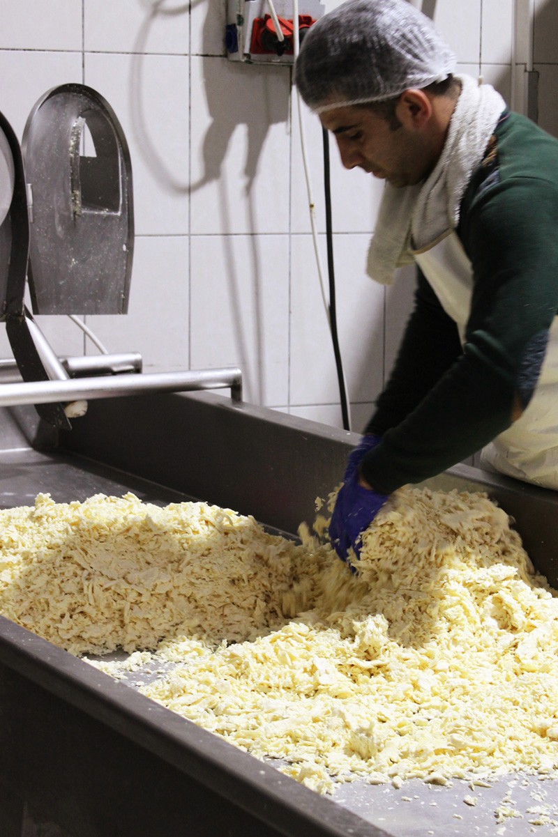 Yoğrulan peynir hamuru tuzlanır ve kalıplara basılır. Kalıpta bir gün bekletilen peynir, daha sonra kalıptan çıkarılarak yüzeyi tekrar tuzlanır. İlk birkaç gün boyunca peynir düzenli olarak çevrilir ve tuz işlemi tekrarlanır.