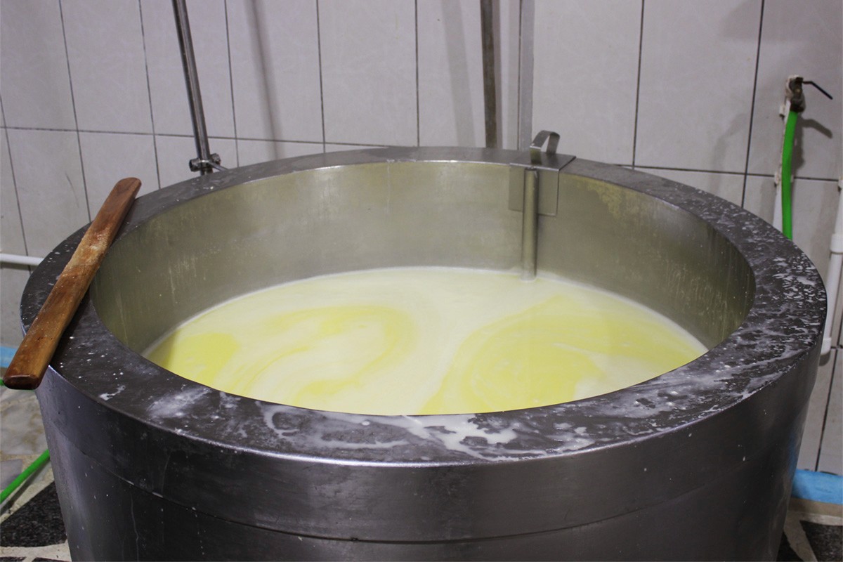 Taze sağılmış sütler, yöreye özgü bakır kazanlara alınarak 32-35°C arasına kadar ısıtılır. Isıtma işlemi tamamlandıktan sonra, henüz ot yemeye başlamamış buzağı veya kuzunun midesinden elde edilen doğal şirden mayası ile mayalanır. Bazen daha kaliteli bir peynir elde etmek için mayalama sırasında karışıma eski bir gravyer peynirinden bir parça da eklenebilir. Mayalanan süt, yaklaşık 45 dakika içinde pıhtılaşır ve teleme adı verilen peynir pıhtısı oluşur.