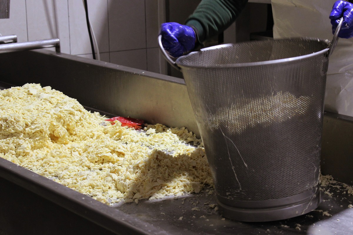 Oluşan teleme, ahşap veya tel kesicilerle pirinç tanesi büyüklüğüne gelene kadar kırılır. Bu işlemden sonra yaklaşık 10 dakika kendi halinde dinlendirilen pıhtı, tekrar ısıtılarak yaklaşık 57°C’de 40–45 dakika boyunca karıştırılarak pişirilir.